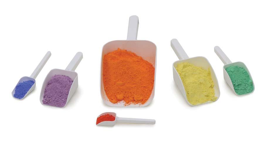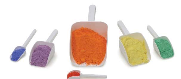Brightly coloured scoops are especially visible if they are left in light coloured powders.