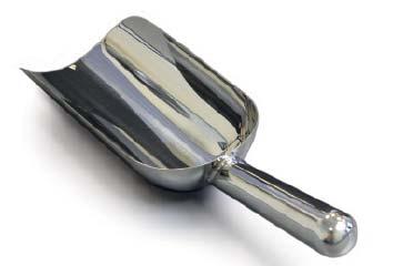 It is Good Manufacturing Practice to keep your hands out of the product as much as possible. In accordance with this we have positioned the ergonomic handles high up on the scoop.