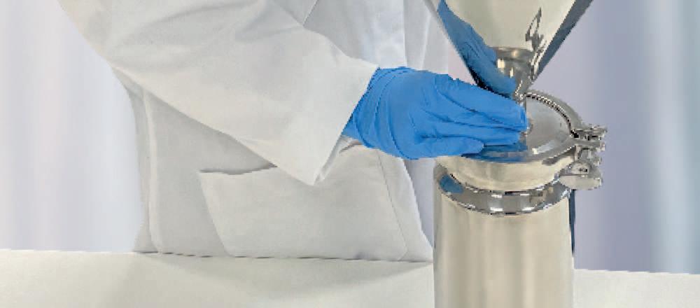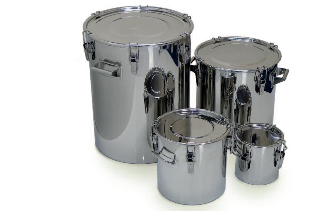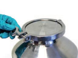 The Tri-Ferrule lid (BS4825-3) ensures that the containers are both powder-tight and watertight. The Tri-Ferrule system enables the containers to be clamped directly on to other items of processing equipment.
