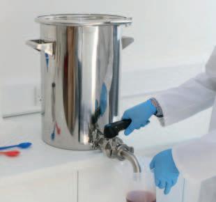 Jacketed Vessels are perfect for controlling the temperature of the product. A warming or cooling liquid can be passed through the jacket. The containers have a tri-ferrule lid.
