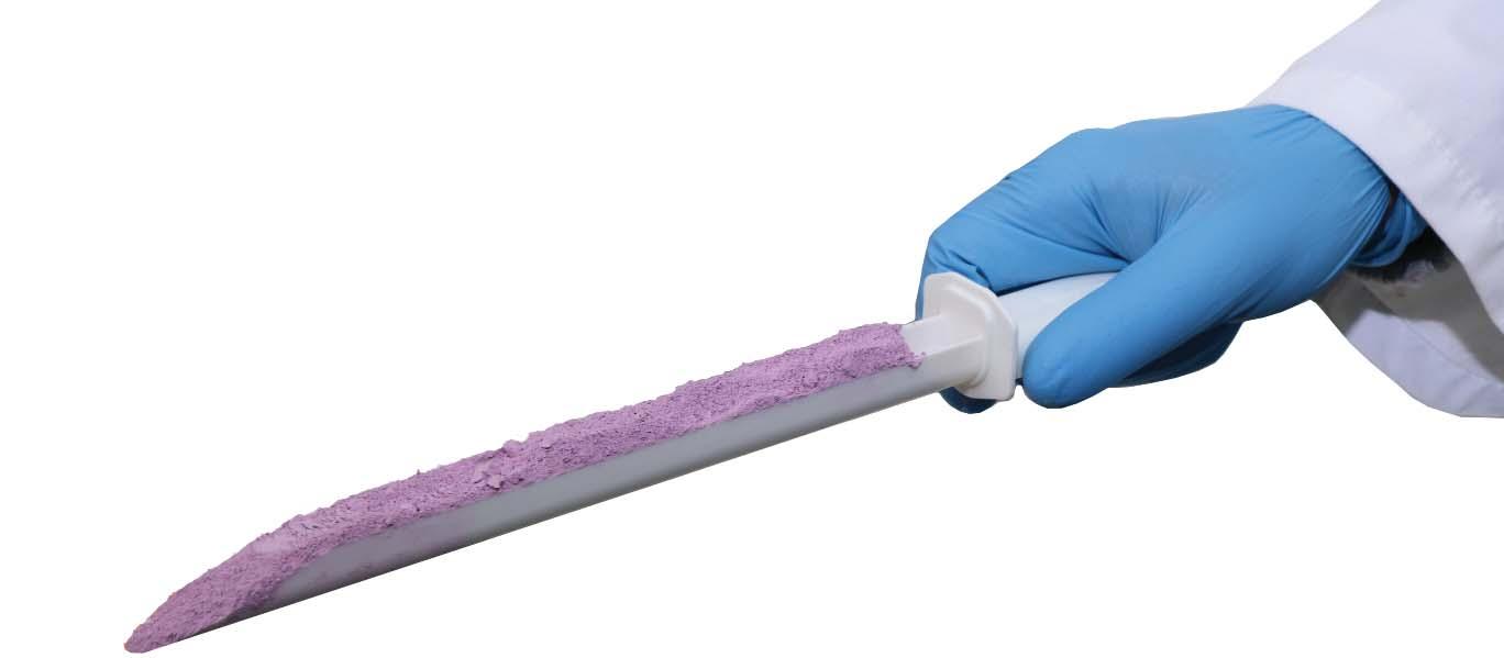 The blue FoodSpoon from Sampling Systems is ideal for sampling small amounts of powder and for dispensing small quantities.