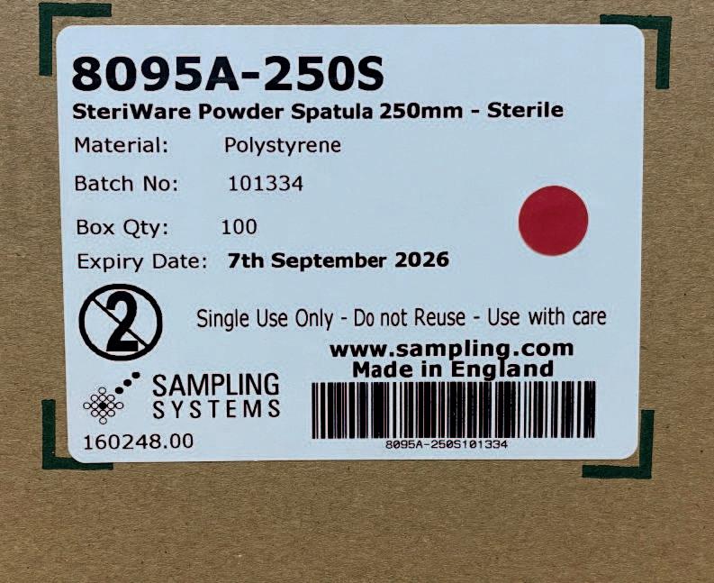 Both non-sterile and sterile scoops are available from stock. They are manufactured in a Cleanroom to ensure cleanliness and reduce particulate contamination.