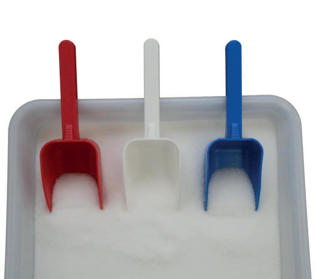Coloured scoops are ideal when you are concerned that the scoop could be left in the product.