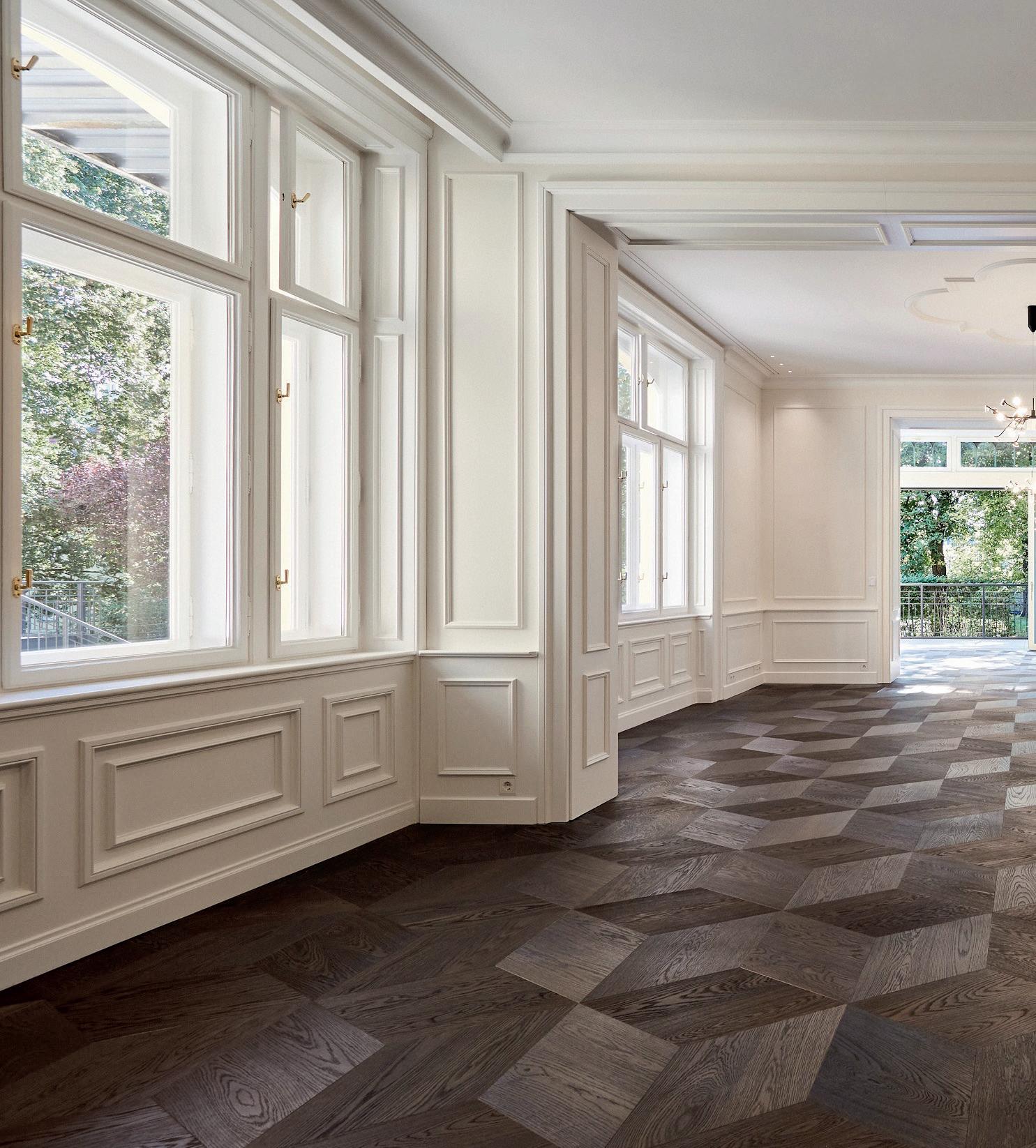 Vienna, AUSTRIA. This luxury apartment in a historic villa near Schönbrunn Palace features a private garden and access to a landscaped park garden. Situated in an upscale embassy district, this property combines historical elegance with modern technique and high-end finishings.