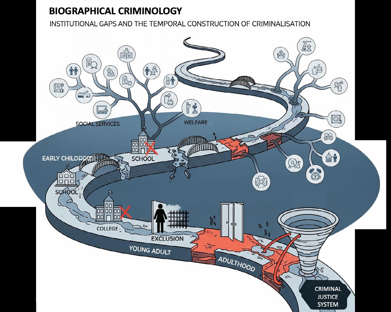 failures that precede and produce such contact, revealing criminalisation as the predictable outcome of systematic gaps in education, healthcare, social services, and welfare provision across individual life courses.