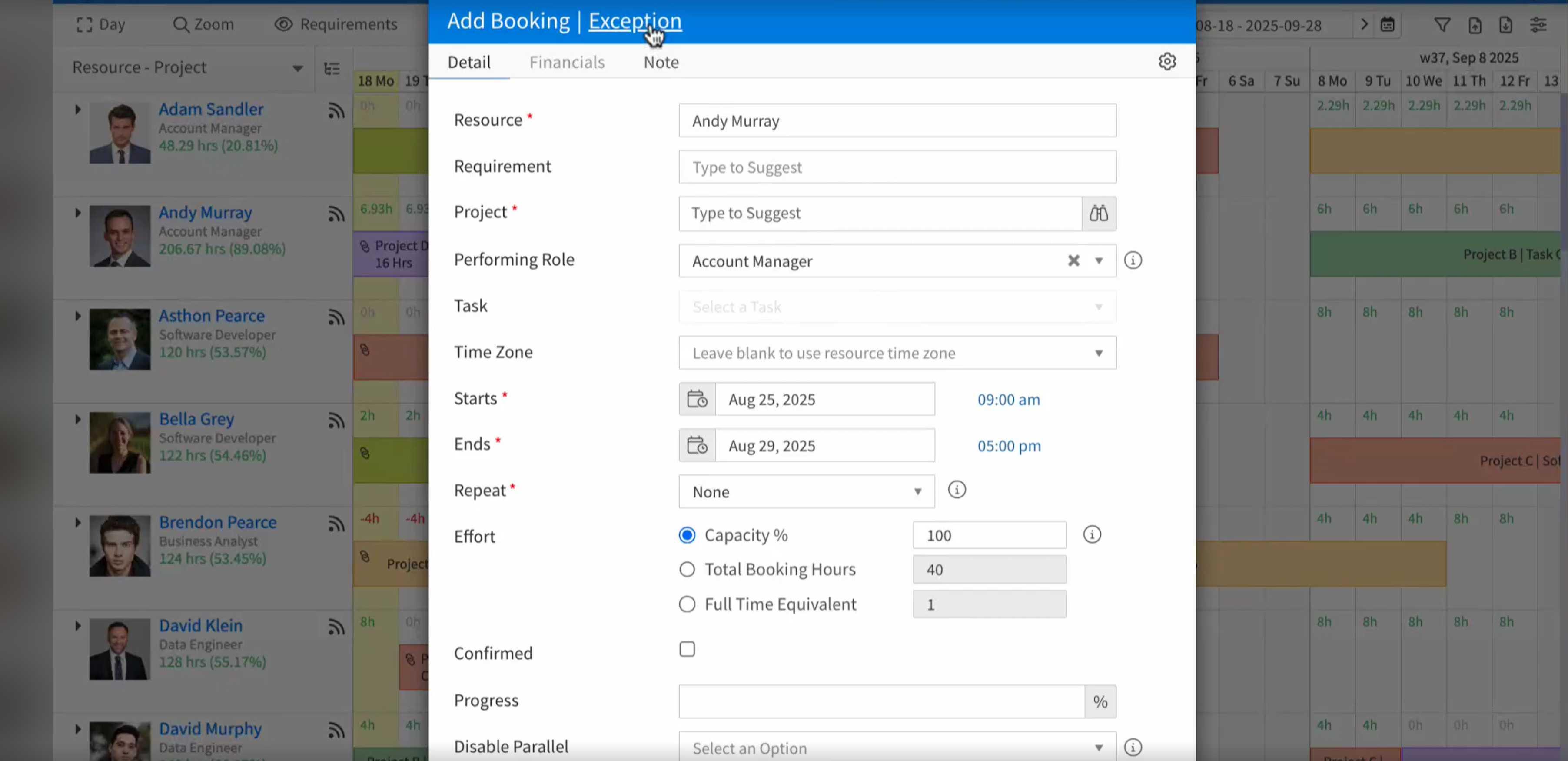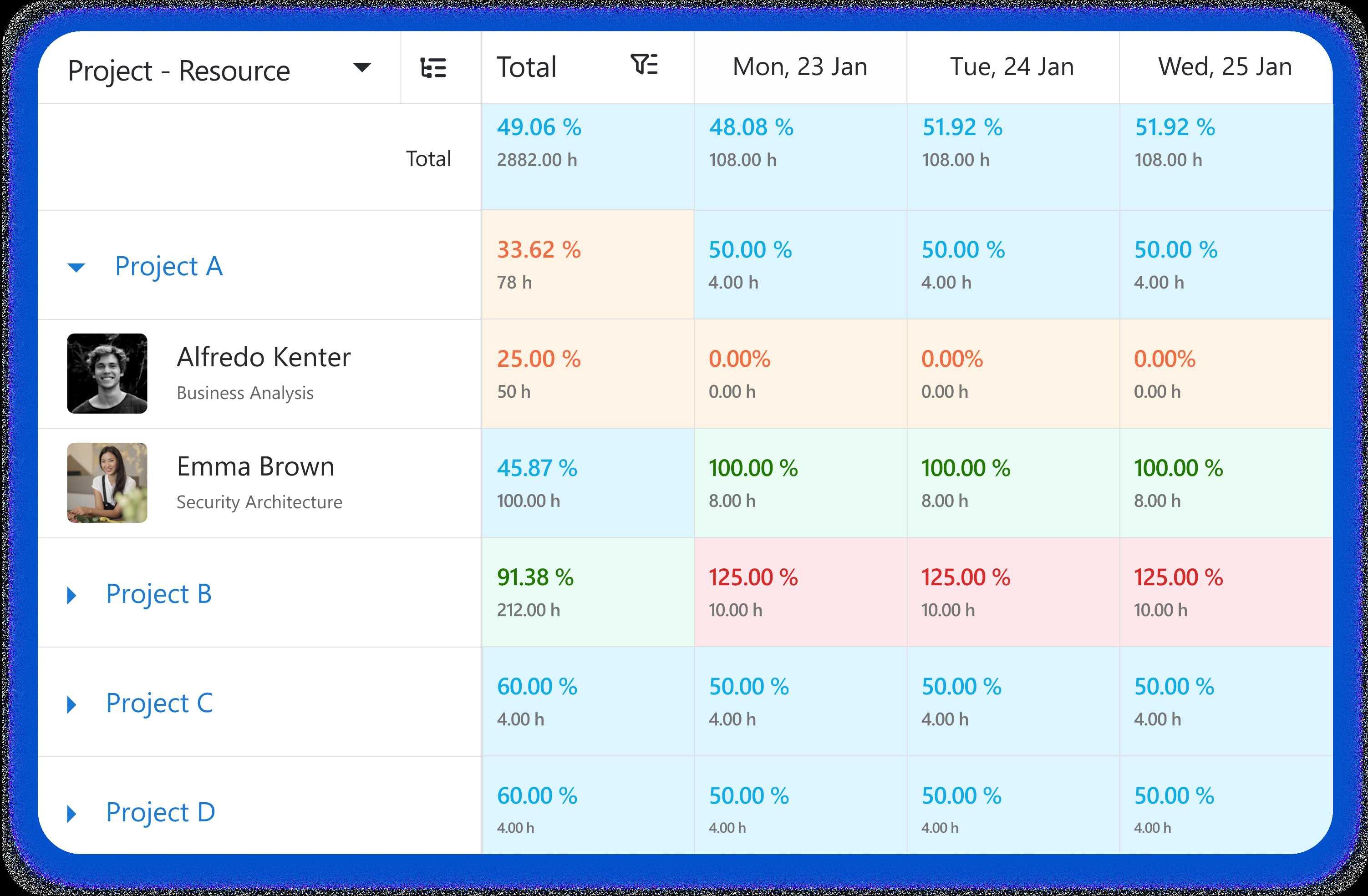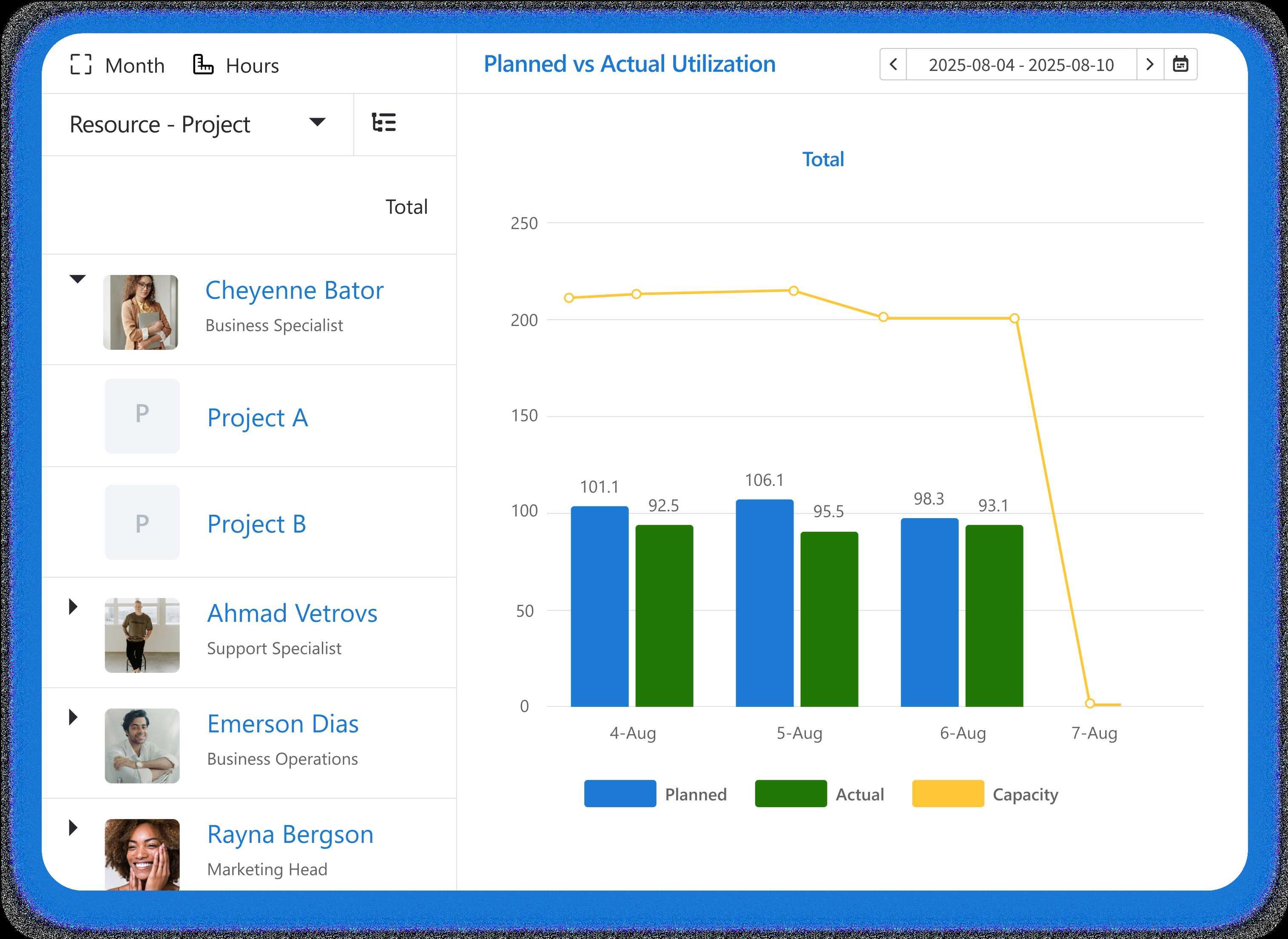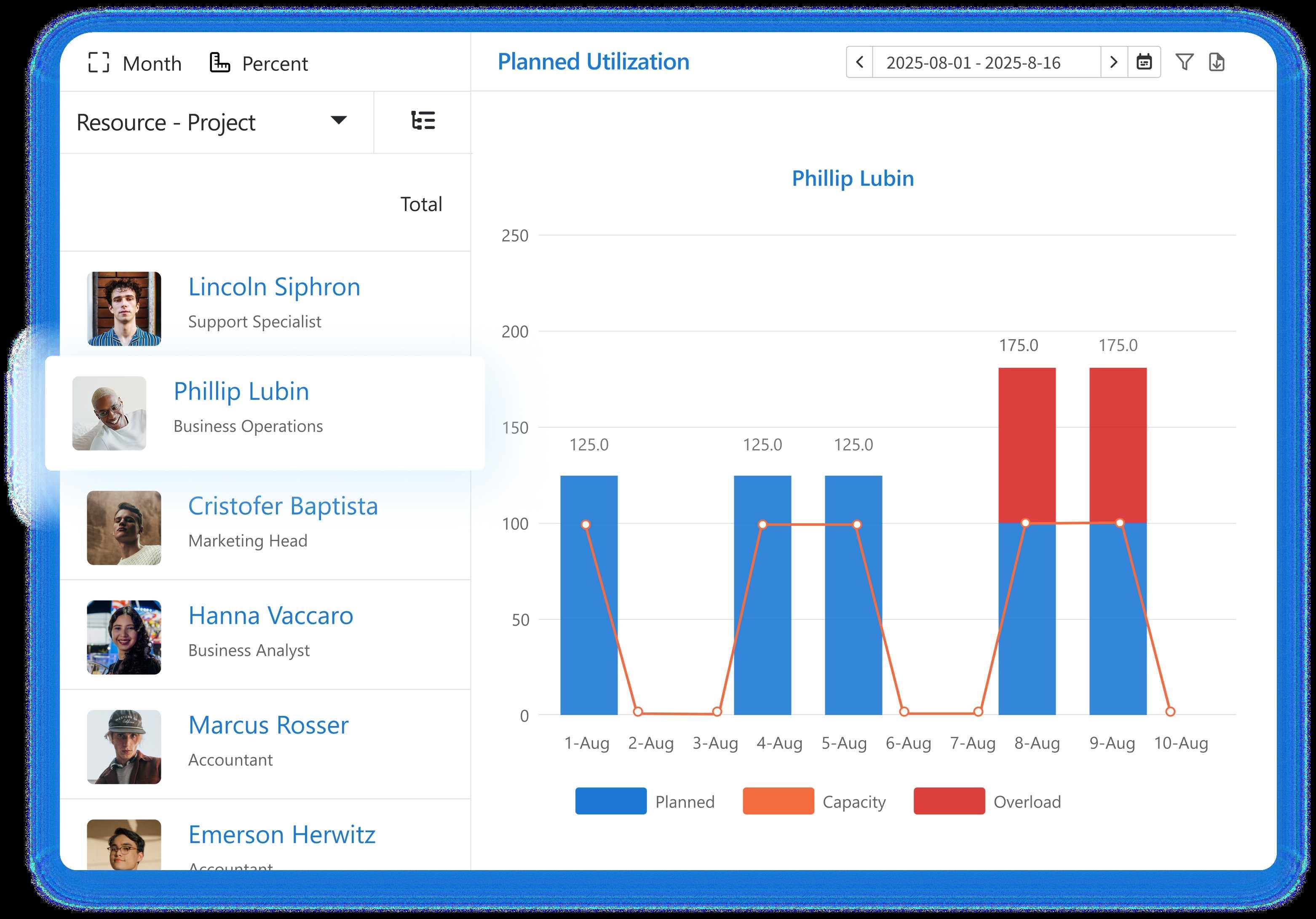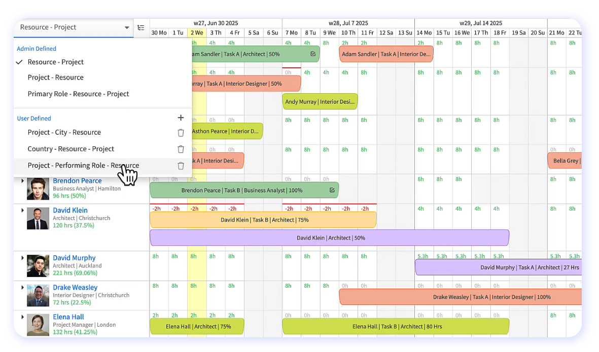Filter resources by role, skill, or team to check availability and improve , ensuring perfect fit assignments. capacity planning