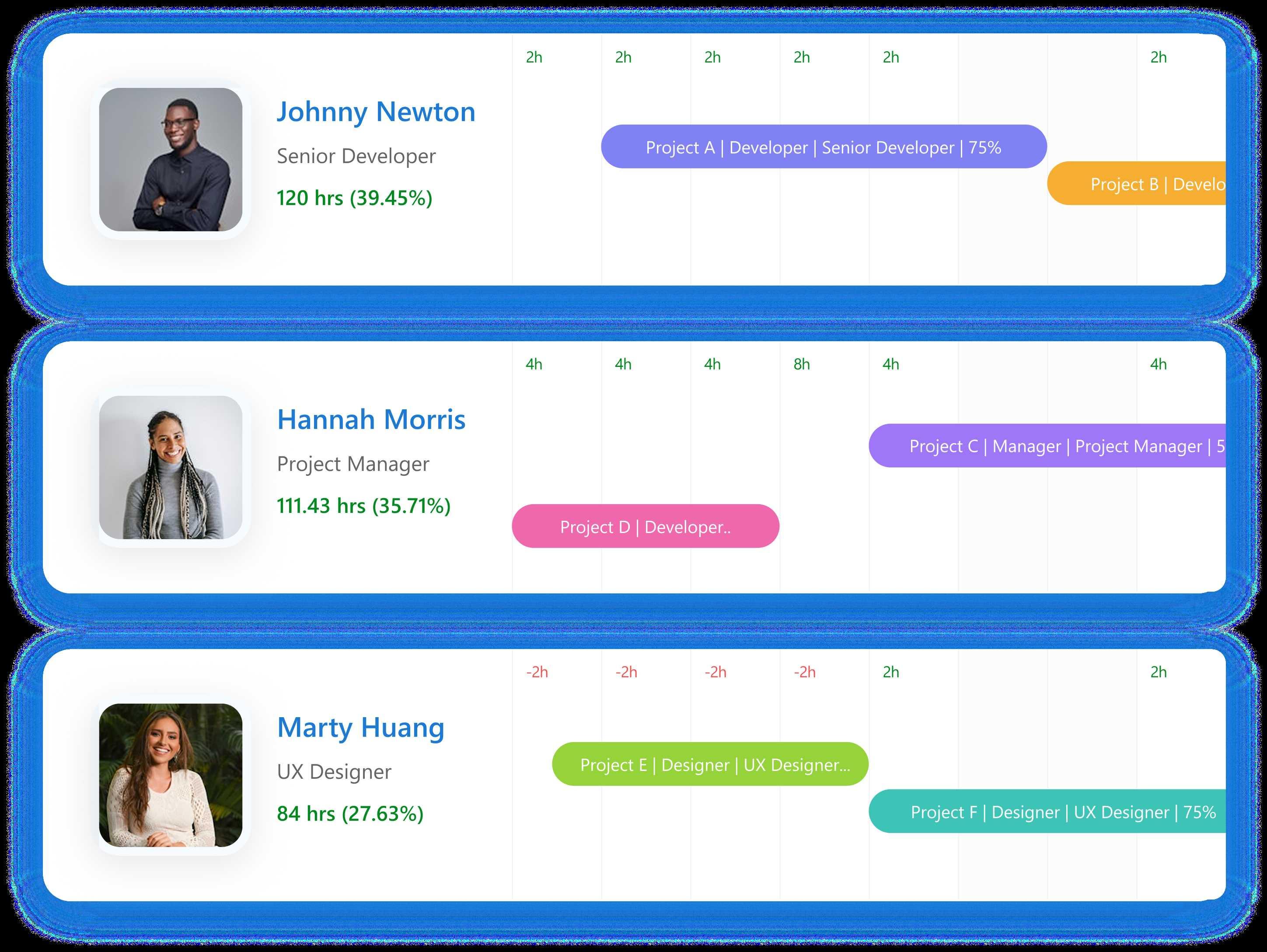Make sure each project has the team it needs from day one by allocating people based on role, availability, and workload.