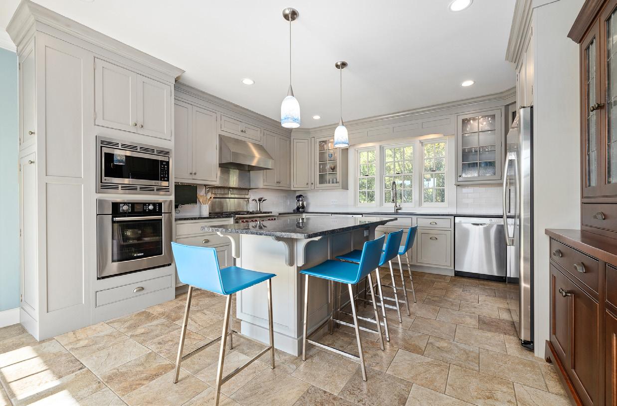 Gourmet kitchen features oversized island with seating, 2 dishwashersBosch and Wolf appliances.