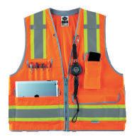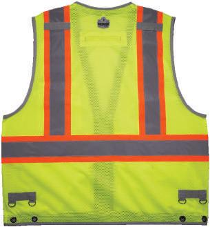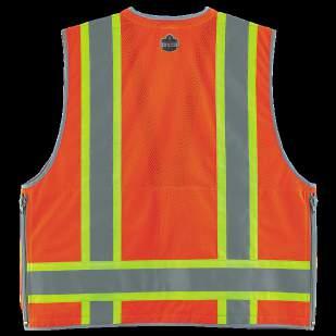 ergodyne.com 800 225-8238 35 HI-VIS ORANGE HI-VIS LIME MODEL CKETS XS S/M L/XL 2XL/3XL 4XL/5XL XS S/M L/XL 2XL/3XL 4XL/5XL TWO-TONE8230Z MESH POCKETS: 1 INNER: 1 OUTER: 0 REAR: 0 HLZ 21313 21315 21317 21319 21323 21325 21327 21329 FEATURES TWO-TONE8235ZX X BACK POCKETS: 5 INNER: 1 OUTER: 4 REAR: 0 HLZ 26183 26185 26187 26189 FEATURES TWO-TONE8246Z MESH POCKETS: 6 INNER: 2 OUTER: 4 REAR: 0 HLZ 24133 24135 24137 24139 24143 24145 24147 24149 FEATURES 8248Z TWOTONE SURVEYORS POCKETS: 6 INNER: 2 OUTER: 4 REAR: 0 HLZ 24063 24065 24067 24069 24073 24075 24077 24079 FEATURES SURVEYORSECONOMY8249Z POCKETS: 4 INNER: 2 OUTER: 2 REAR: 0 HLZ 24011 24013 24015 24017 24019 24021 24023 24025 24027 24029 FEATURES SURVEYORS8250Z POCKETS: 7 INNER: 2 OUTER: 4 REAR: 1 HLZ 21413 21415 21417 21419 21423 21425 21427 21429 FEATURES TAPEPERFORMANCECOMBINED8250ZHGSURVEYORS POCKETS: 7 INNER: 2 OUTER: 4 REAR: 1 HLZ 21433 21435 21437 21439 FEATURES 8253HDZ HD MESH SURVEYORS POCKETS: 7 INNER: 2 OUTER: 4 REAR: 1 HLZ 23313 23315 23317 23319 23323 23325 23327 23329 FEATURES • 3M™ Scotchlite™ Reflective Material • Reflective set on 3.5" contrasting background • Inside: 1 large lower L pocket • Outside: Upper L chest mic tab • Lanyard grommet holds, structured webbing • Inside: 2 large lower pockets • Outside Upper L: 1 cell phone, mic tab • Outside Upper R: 1 dual layer pen & open top • X-back reflective; D-ring access slot • Reflective set on 3.5" contrasting background • Inside: 1 large lower L pocket • Outside Upper: L cell pocket, R 3 slot pen pocket • Reflective binding trim • Inside: 2 large lower pockets • Outside Upper L: 1 cell phone & ID pocket, mic tab • Outside Upper R: 1 dual layer pen & open • Solid front / mesh back • Inside: 2 large lower pockets