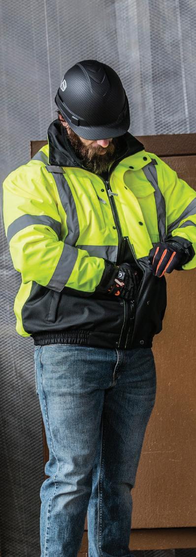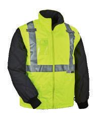MODEL XS S M L XL 2XL 3XL 4XL 5XL TYPE8377R CLASS 3 QUILTED POCKETS: 4 INNER: 1 OUTER: 3 REAR: 0 ORANGE 25612 25613 25614 25615 25616 25617 25618 25619 LIME 25622 25623 25624 25625 25626 25627 25628 25629 FEATURES TYPE8379R CLASS 3 FLEECE LINED BOMBER POCKETS: 4 INNER: 1 OUTER: 3 REAR: 0 ORANGE 24462 24463 24464 24465 24466 24467 24468 24469 LIME 24472 24473 24474 24475 24476 24477 24478 24479 FEATURES TYPE8381R CLASS 3 4-IN-1 POCKETS: 6 INNER: 2 OUTER: 4 REAR: 0 ORANGE 25582 25583 25584 25585 25586 25587 25588 25589 LIME 25592 25593 25594 25595 25596 25597 25598 25599 FEATURES TYPE8287R CLASS PERFORMANCE3THERMAL POCKETS: 2 INNER: 0 OUTER: 2 REAR: 0 ORANGE 25512 25513 25514 25515 25516 25517 25518 25519 LIME 25492 25493 25494 25495 25496 25497 25498 25499 FEATURES TYPE8386R CLASS PERFORMANCE3SHELL POCKETS: 6 INNER: 2 OUTER: 4 REAR: 0 ORANGE 25462 25463 25464 25465 25466 25467 25468 25469 LIME 25372 25373 25374 25375 25376 25377 25378 25379 FEATURES TYPE8388R CLASS 3 4-IN-1 POCKETS: 2 INNER: 0 OUTER: 2 REAR: 0 ORANGE 25552 25553 25554 25555 25556 25557 25558 25559 LIME 25532 25533 25534 25535 25536 25537 25538 25539 FEATURES THERMAL JACKET MODELS • Weatherproof 300D oxford polyester shell • Breathable PU coating with polyester mesh lining • 2” ANSI-compliant 3M™ Scotchlite™ Reflective • Black panels hide dirt and wear • Weatherproof 300D oxford polyester shell (8386) • STANDARD 100 by OEKO-TEX® certified • 100g 3MTM ThinsulateTM body insulation with 80g sleeve insulation (8287) & 3MTM Scotchlite™ Reflective • Weatherproof 300D oxford polyester shell • PU coating • Fully lined with 160g thermal quilted insulation • Black panels hide dirt & wear • Weatherproof 300D oxford polyester shell • PU coating • Zip-out 220g microfleece liner • Black accents on high wear areas • Weatherproof 300D performance ripstop polyester shell • Breathable PU coating • 280g fleece body & thermal insulated quilted sleeves • Zip-out liner with zip-off sleeves creates fleece vest • Wear as a jacket, vest or ultra-warm winter parka • Breathable 300D oxford polyester shell with PU coating • 100g 3M™ Thinsulate™ body insulation • 2” ANSI-compliant 3M™ Scotchlite™ Reflective SERIESJACKETTHERMALINDEX + 8386 8287 QUILTEDNON-CERTIFIED8377EVBOMBER POCKETS: 4 INNER: 0 OUTER: 4 REAR: 0 BLACK 25642 25643 25644 25645 25646 25647 25648 25649 FEATURES • Weatherproof 300D oxford polyester shell • PU coating • 160g quilted insulation for warmth without extra bulk • Adjustable inset hood with drawstring