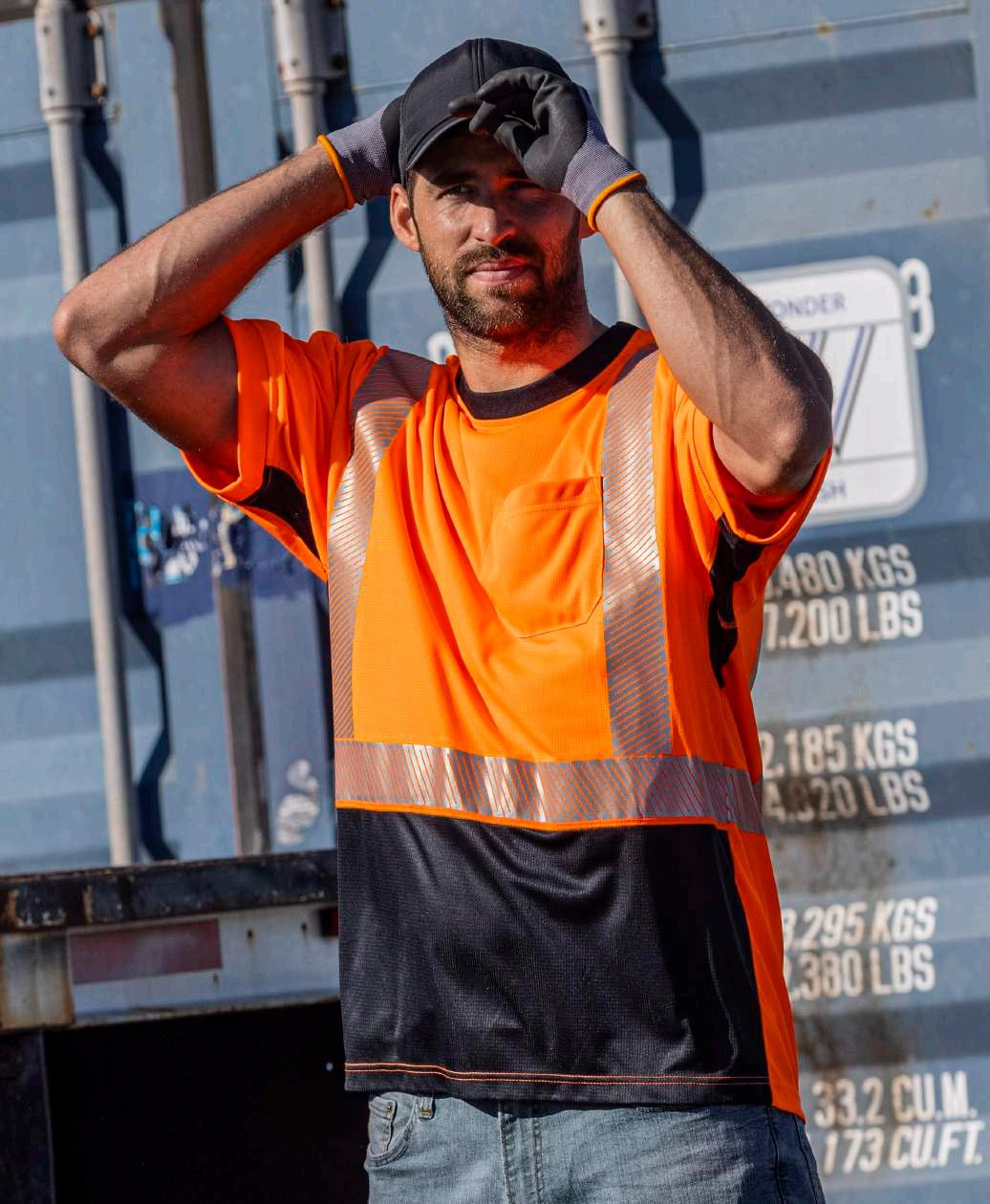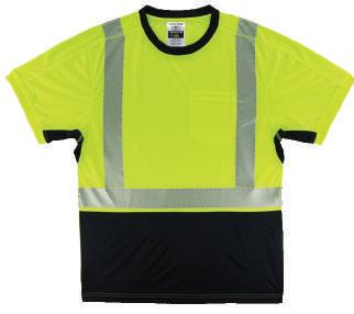 Our improved and expanded Hi-Vis Shirts & Sweatshirts Series lets tenacious SOBs from any trade comfortably enter another dimension of safety. No soppy soaked cotton here, just space-age fabric that scientifically sucks away moisture and hurls it back at the cosmos and toasty fleece that keeps you warm when the mercury drops. Be safely seen, get the sweat off your back and get more done. The cosmic trifecta— now available in long sleeve. T-SHIRT,8283BKLIGHTWEIGHT PERFORMANCE, TYPE R, CLASS 2, BLACK BOTTOM POCKETS1 OUTERCHESTBREATHABLE VENTSUNDERARM REFLECTIVESEGMENTED TAPE FOR VISIBILITYLOW-LIGHT BLACK PANELING HIDES SWEAT & DIRTUPF 30+ 8283BK PERFORMANCE MATERIAL IS 20% LIGHTER THAN 8280BK 8293 8283BK