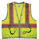 HI-VIS // CLASS 2 VEST,8231TVTOOLTETHERING, TYPE R, ZIPPER, DUAL COMPLIANT: ANSI/ISEA 121 AND ANSI/ ISEA 107 CERTIFIED FOR DROPPED OBJECT PREVENTION AND HI-VIS COMPLIANCE 20& TETHERING POINTS ALL ANSI 121-CERTIFIED TO 2LBS AND 4-FOOT MAX TETHER FALL HARNESS COMPATIBLE BACK/SIDE D-RING SLOT POCKETS14 INNER OUTER 8231TV