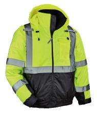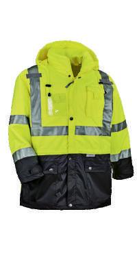 ergodyne.com 800 225-8238 27 THERMAL8287 JACKET, TYPE R, CLASS 2, REMOVABLE SLEEVES THERMAL8388 4-IN-1 JACKET, TYPE R, CLASS 3/2 POCKETS02 INNER OUTER THERMAL8377 JACKET, TYPE R, CLASS 3, QUILTED BOMBER POCKETS03 INNER OUTER THERMAL8379 JACKET, TYPE R, CLASS 3, FLEECE-LINED BOMBER POCKETS04 INNER OUTER WINDBREAKER8351 WATER-RESISTANT JACKET, TYPE R, CLASS 3 POCKETS14 INNER OUTER SOFTSHELL8353 WATER-RESISTANT JACKET, TYPE R, CLASS 3 POCKETS13 INNER OUTER THERMAL8381 4-IN-1 JACKET, TYPE R, CLASS QUILTED-SLEEVES3, BOMBER POCKETS04 INNER OUTER THERMAL8377EVJACKET, ENHANCED VISIBILITY, NON-CERTIFIED, QUILTED BOMBER POCKETS03 INNER OUTER THERMAL8384 JACKET, TYPE R, CLASS 3, QUILTED PARKA POCKETS03 INNER OUTER 4-IN-18385JACKET, TYPE R, CLASS 3 POCKETS23 INNER OUTER POCKETS24 INNER OUTER WEATHERPROOF 300D OXFORD POLYESTER OUTER SHELL WITH BREATHABLE PU COATING BREATHABLE • OUTER SHELL INSET HOOD • TWO FRONTEXTERNALPOCKETS • EXTERNAL ZIPPER CHEST POCKET • CELLPHONECHESTPOCKET • CLEAR ID BADGE HOLDER • DUAL MIC TABS INNER JACKET WITH 100G 3M THINSULATE AND ZIP OFF SLEEVES