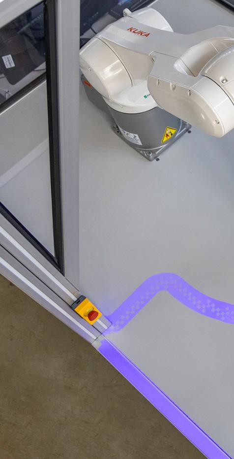 technologique insérée dans la grille. Le contraste entre ces éléments met en valeur la configuration et la matérialité du système structurel, tout en assurant un niveau optimal de lumière naturelle, de protection solaire et d’isolation thermique.