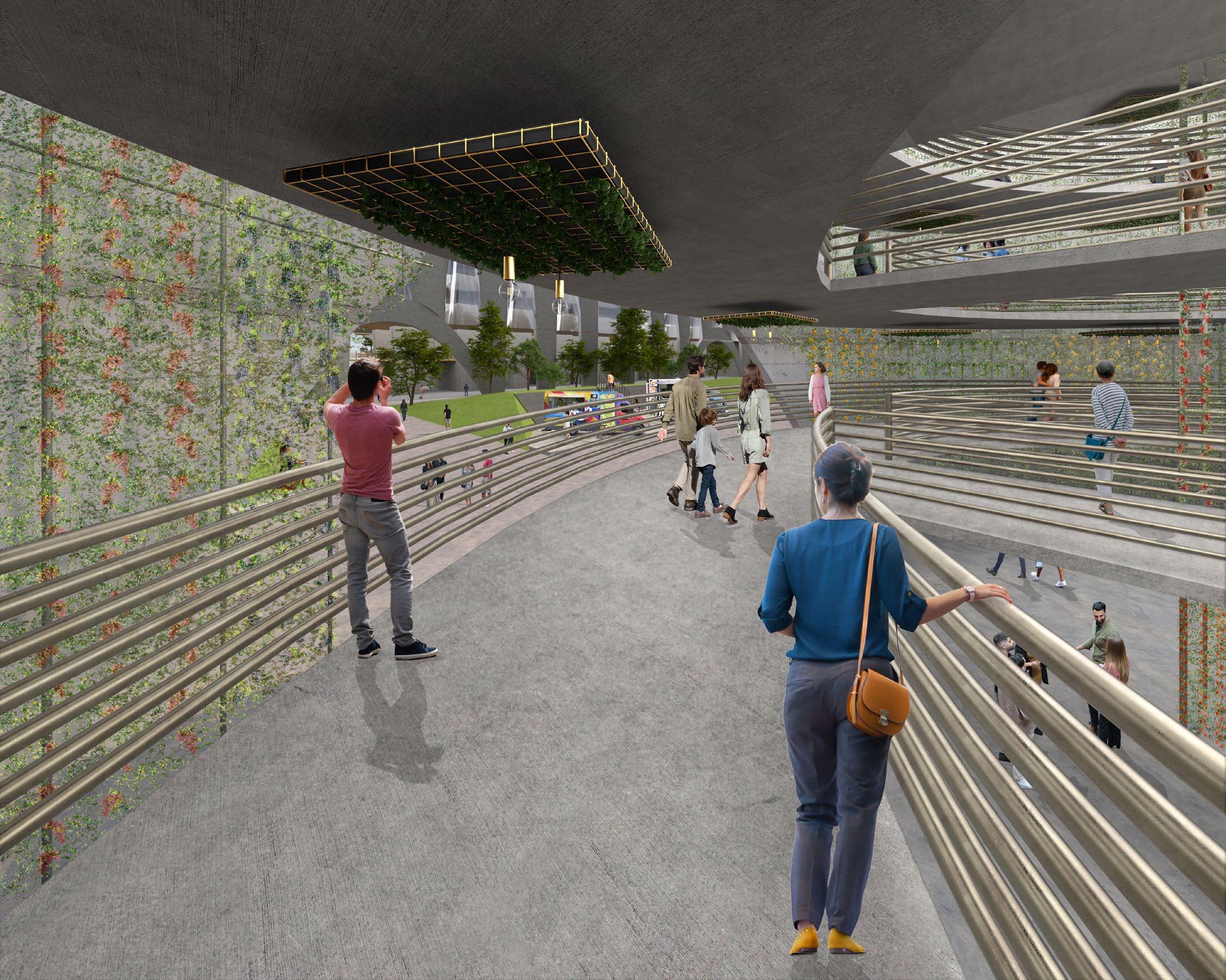 to the various floors, and get a closer look at the vertical garden that encircles the walkable area. Eventually, the food cultivated within the vertical garden will also be used to make the food the public will be consuming within the main dining hall as the site was designed in a way to recycle its food sources on site.