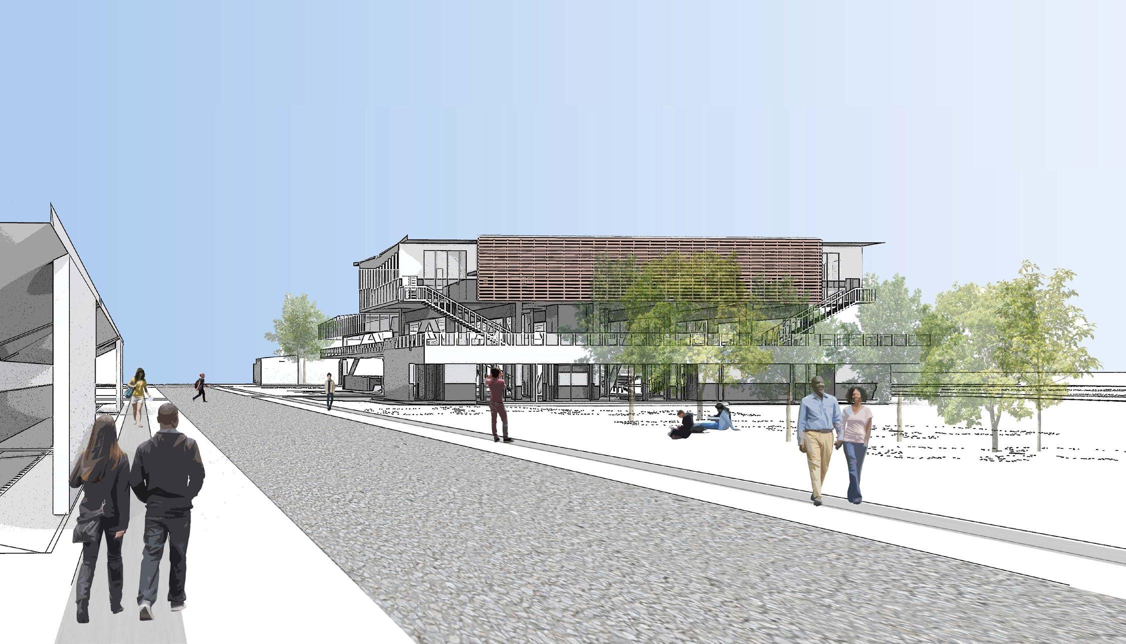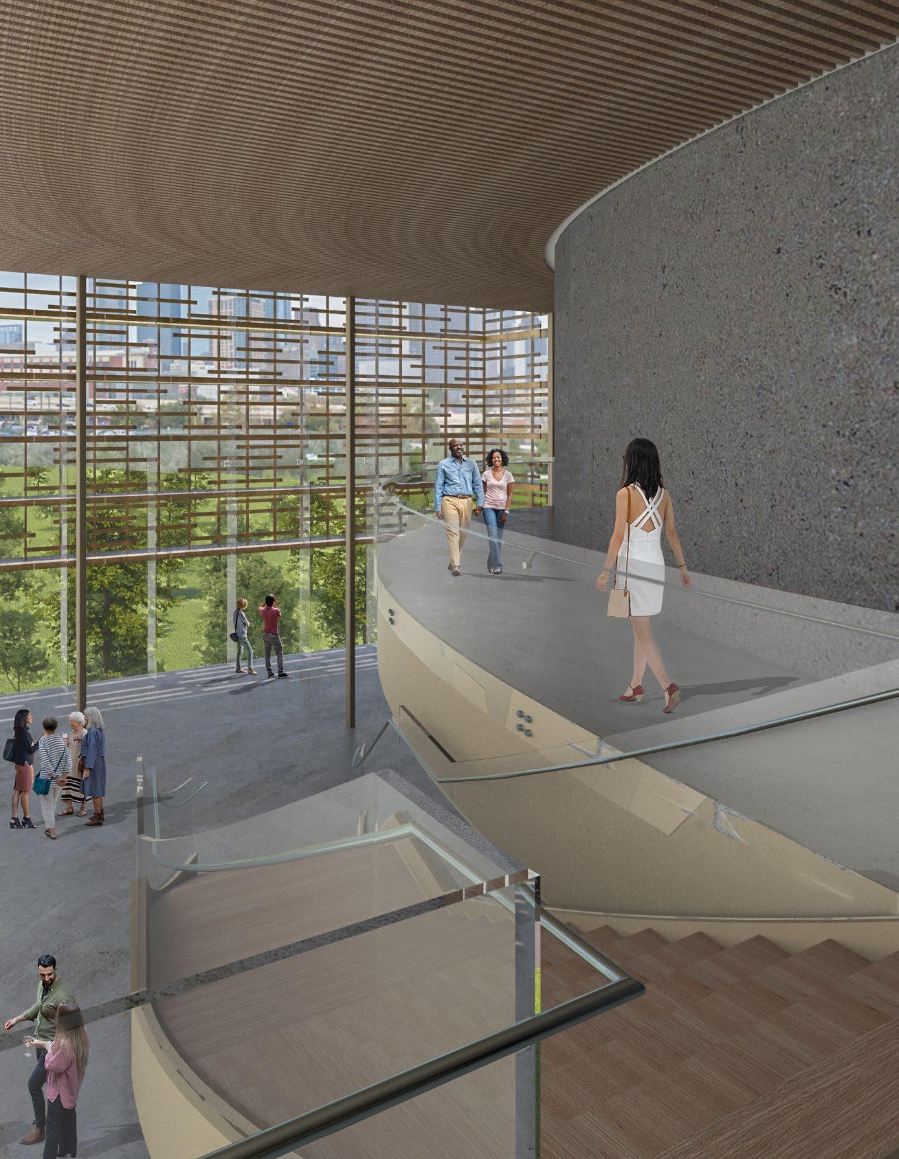 Around the Performance Hall exists a contemporary building that seems almost as if it has been absorbed into the ‘Singularity of Music’ by its immense, pseudogravitational attraction. The hope is that this new music performance venue will become a small landmark in the City of Houston, celebrating the community’s diversity, as well as a place for musicians and music lovers of all musical genres to teach clinics and record their form of musical expression.