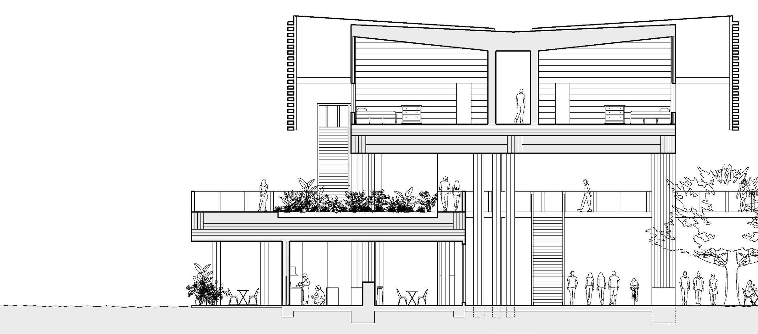 In addition to the dinning hall that is open to the public there are also much more private spaces within the co-op that also offers educational sessions on cooking classes, sustainable farming practices, urban gardening, and food sourcing. You’ll get hands-on experience in growing your own ingredients, understanding the farm-to-table process, and appreciating the importance of sustainability in food production. Furthermore, the co-op also intergrates a outdoor bar/garden on the rooftop for potential events amongst the event center and office spaces that occupy the building.
