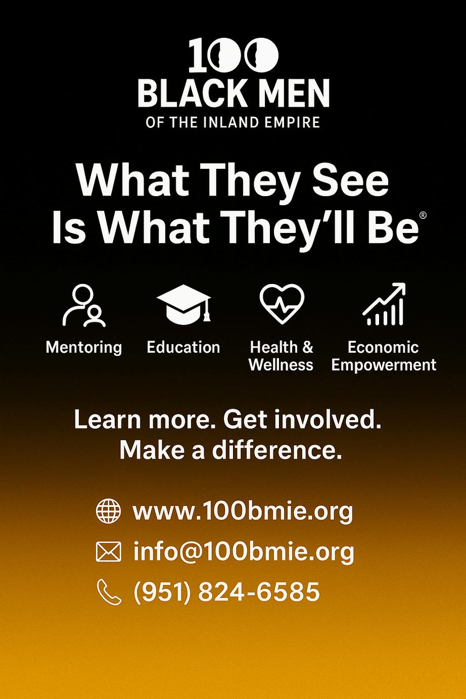 In California’s Inland Empire, Black youth continue to face barriers in education, health, and opportunity From high suspension rates and low math proficiency scores to limited early childhood education access, these systemic gaps make it harder for many to thrive That’s where 100 Black Men of the Inland Empire (100 BMIE) steps in providing mentorship, scholarships, and wellness programs that give young people the tools to succeed
