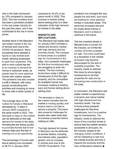 January 2023 Maryland Real Estate Data