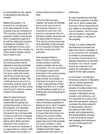 Homebuyer’s Guide to Maryland’s foreclosure process.