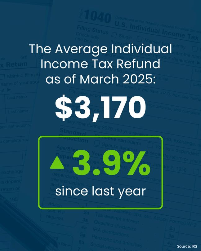 So far, the average individual tax refund this year is $3,170. Of course, your number may be different