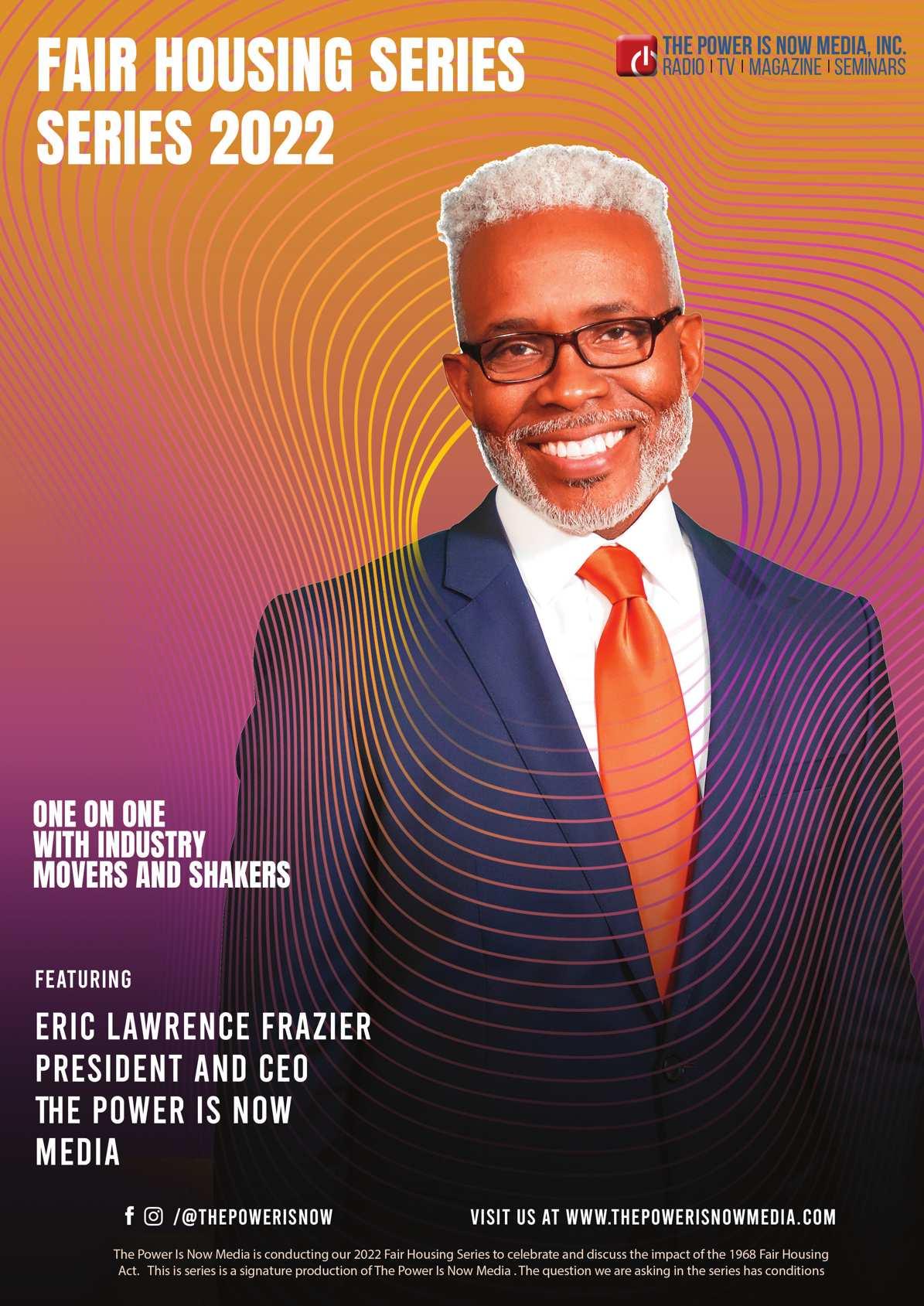 FOUNDERAND EDITORINCHIEF MANAGINGEDITOR CREATIVEDIRECTOR CONTACT EDITORIALDIRECTOR EricLawrenceFrazier,MBA EricLawrenceFrazier,MBA Info@thepowerisnow.com (800)401-8994ext.701 DanielsGeorge GoldyPonceArratia Office:(800)261-1634ext.703 Direct:(714)361-2105 Eric.frazier@thepowerisnow.com www.thepowerisnow.com www.blogtalkradio.com/thepowerisnow HUDMAGAZINE WE WANT TO HEAR FROM YOU! CONNECT WITH US! SHARE US! Facebook Instagram LinkedIn Twitter Pinterest YouTube ActiveRain