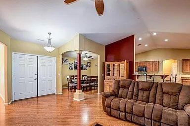 Welcome home! Have a seat and relax on the covered front porch with your favorite book or beverage. This spacious 3 bedroom, 2 bathroom gem offers versatile living spaces. The front living room doubles as a formal dining area or study, perfect for your lifestyle. Enjoy the open concept main living area, seamlessly connecting to the kitchen and dining area. Ample cabinetry, an island, and an eat-on breakfast bar make the kitchen a chef’s delight. Privacy is ensured with split secondary bedrooms from the master suite. Outside, the large backyard beckons for play and entertainment. Schedule your appointment today!