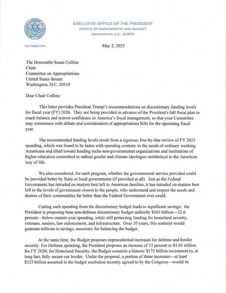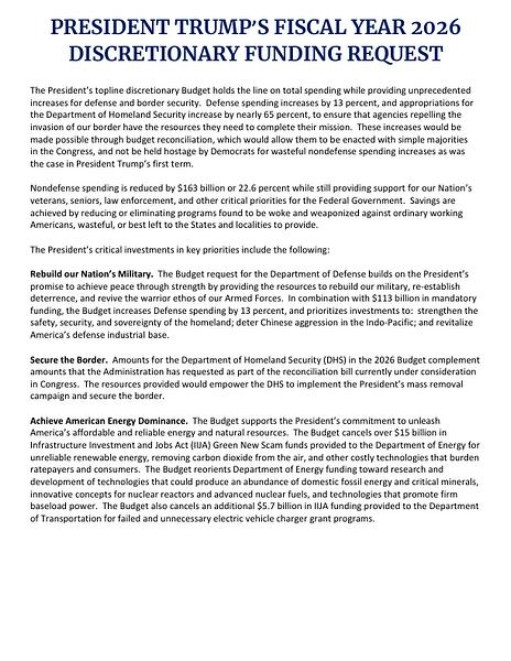 • President Trumps Fiscal Year 2026 Discretionary Funding Request