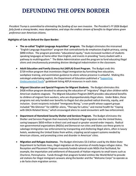 DEFUNDING THE OPEN BORDER FACT SHEET