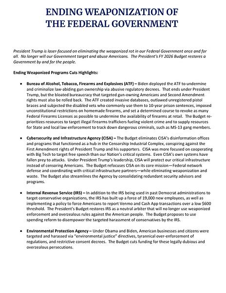 ENDING WEAPONIZATION OF FEDERAL GOVERNMENT FACT SHEET