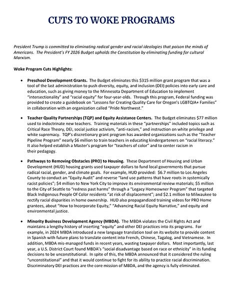 CUTS TO WOKE PROGRAMS FACT SHEET