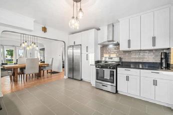 The home features a fully updated kitchen, with new stainless-steel appliances, gleaming granite countertops and custom soft close cabinetry, and kitchen island perfect for preparing meals for family and friends. The kitchen opens neatly into a perfect formal dining area The bedroom on the main level offers comfortable living spaces, with large windows providing ample natural light. The full bathroom has also been remodeled with a modern design, providing a spa-like experience every time you step in Upstairs, you will find two spacious bedrooms that can be used as an office or guest room, or primary bedroom offering great versatility. There is a full bathroom on this level as well with a large, tiled, walk-in shower perfect to relax after your day. This cape home also features a large rear deck open to your backyard, providing a great space for outdoor activities and entertainment