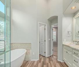 StatStep inside this polished residence through an elegant foyer with pristine marble floors, warm neutral tones and a cozy front living space. Continue past a large formal dining room, into a lovely den with custom fireplace. The huge kitchen is a chef’s dream, with large central island, breakfast bar, endless counter space & cabinetry, trusted appliances & eat-in nook. Step outside onto a sprawling wraparound deck which leads to a backyard paradise, complete with stunning pool & spa, covered patios & lush mature landscaping. The first floor primary ensuite features extra tall ceilings, walk-in closet, luxurious bath with steam shower & dual vanities PLUS an additional bedroom allowing for flexible space.