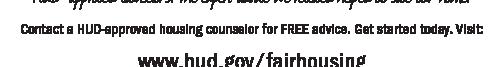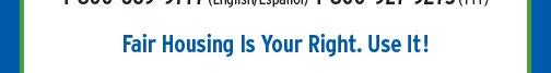 choosing is a right. housing discrimination is wrong. where you live Visit www.hud.go v/fairhousing or call the HUD Hotline 1-800-669-9777 (voice) 1-800-927-9275 (TTY) discrimination because of race, color, religion or national origin is illegal. e only way to stop it is for you to report it. A public ser vice message from the U.S. Depar tment of Housing and Urban Development in par tnership with the National Fair Housing Alliance The federal Fair Housing Act prohibits discrimination because of race, color, religion, national origin, sex, family status or disability. For more information, visit www.hud.gov/fairhousing.
