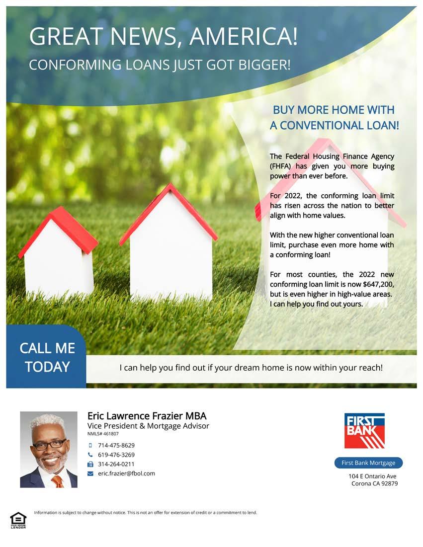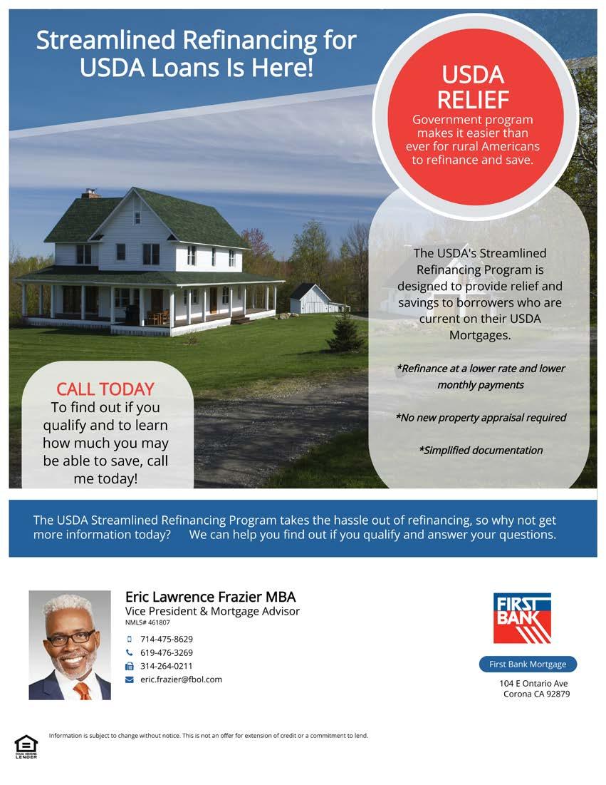 Purchase of an owner-occupied primary residence Minimum FICO 620 required Flexible Income Limits (low-to-moderate income) C all to Learn More or T o Get Started A chieve the Dream with the help of the GSFA OpenDoors® Program This flyer contains general program information, is not an offer for extension of credit nor a commitment to lend and is subject to change without notice. For complete program guidelines, loan applications, interest rates and annual percentage rates (APRs), contact a GSFA Participating Lender. Golden State Finance Authority (GSFA) is a duly constituted public entity and agency. Copyright © 2021 3005OD63 Oct 2021 Eric L. Frazier MBA Vice President and Mortgage Advisor Office: (800) 261-1634 ext. 703 Fax: (314) 264-0211 eric.frazier@fbol.com www.applytobuynow.com