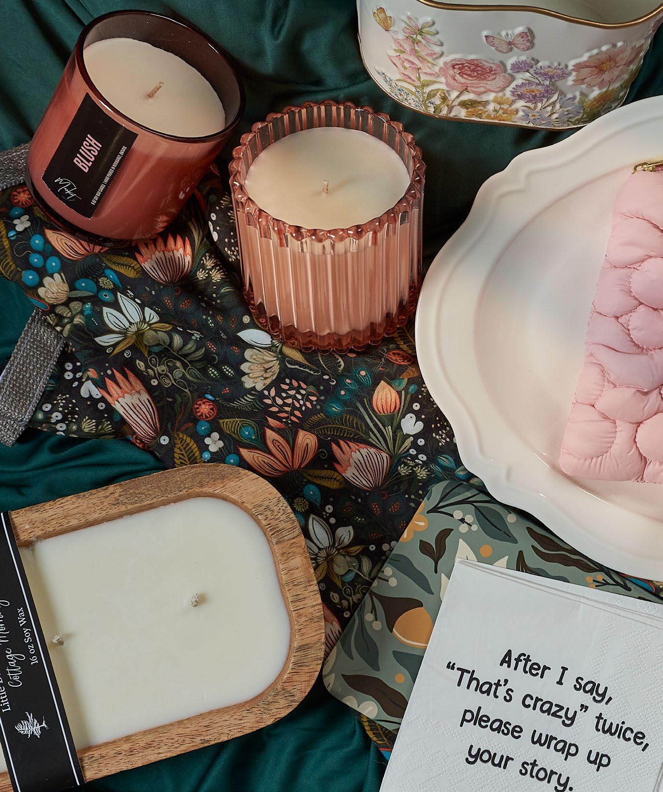 • Pair a slower-moving tee with a trendy accessory or a candle with a tea towel