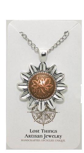 Penny floral necklace on a 20-inch stainless steel chain. Handmade in Canada, $60 retail, Lost Things Artisan Jewelry, 250-858-7738, lostthingsartisanjewelry.faire.com