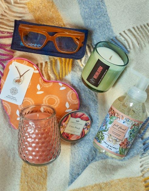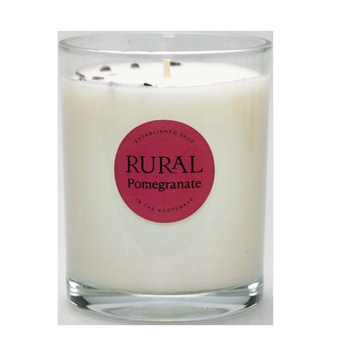 Pomegranate glass candle sprinkled with garnet gemstones and scented with a range of rich notes, $42 retail, Rural Candles, www.ruralcandles.com