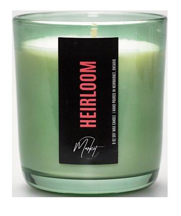 Heirloom nine-ounce soy candle scented with tomato leaf and wild herbs, $36 retail, Market Candle Company, 905-2355559, www.marketcandlecompany.com