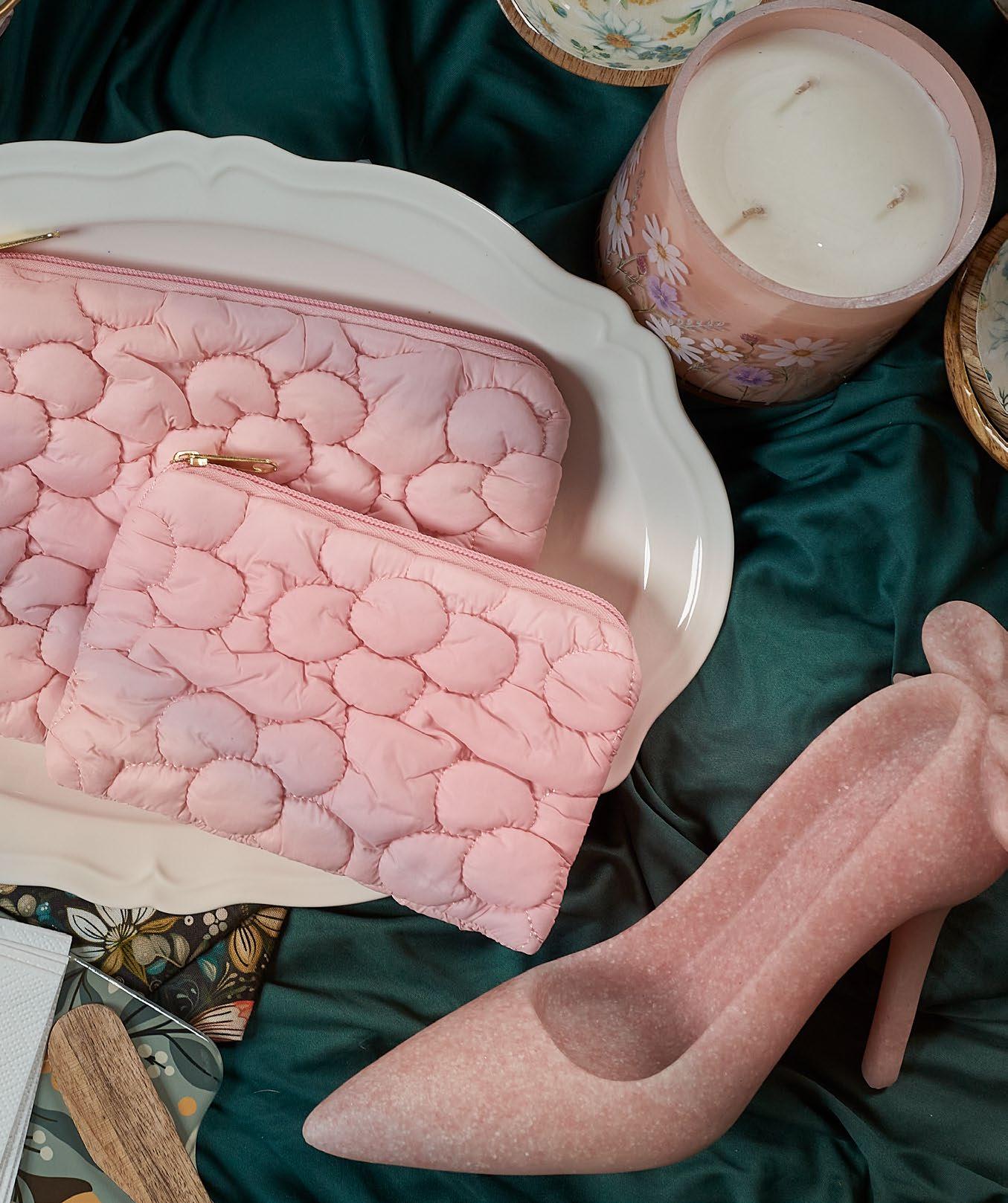 Soft, feminine pinks and pretty florals are the current darlings of home décor