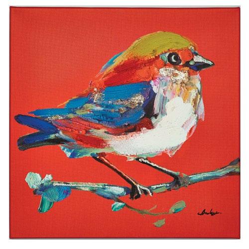 Bold Plumage, a hand-embellished 16-inch by 16-inch piece of canvas art, $43.99 retail, Streamline Art, streamlineart.com