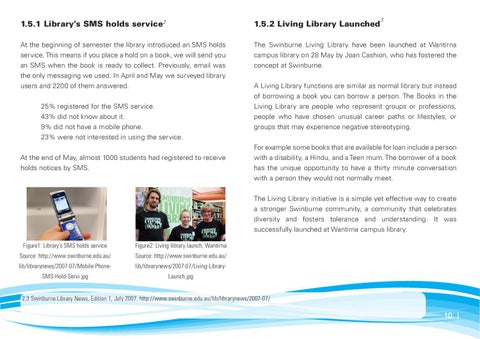 2,3 Swinburne Library News, Edition 1, July 2007, http://www.swinburne.edu.au/lib/librarynews/2007-07/