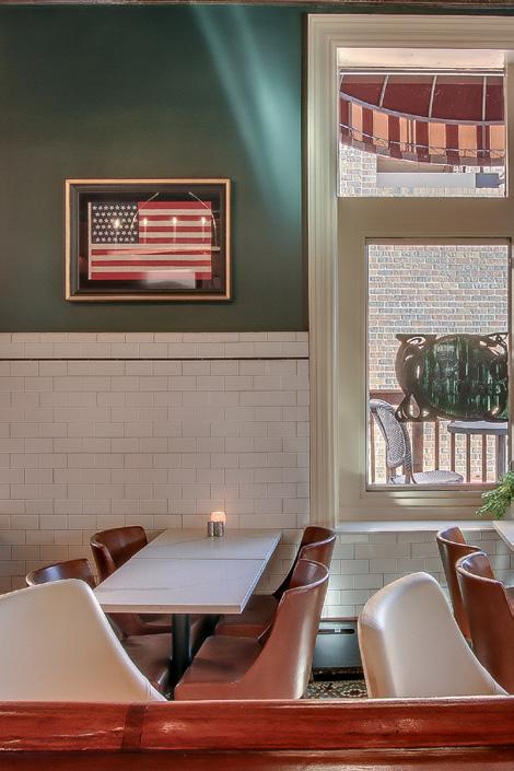 Main Street in Manayunk is a popular, walkable restaurant and retail destination in a densepopulated neighborhood in Philadelphia. Bernie’s, a new restaurant concept with successful suburb locations, acquired this well-known, two-story building and desired to incorporate their branding with touches of local and historical references. Art was a driving factor in the design with large scale, custom photographic wallpaper murals and artwork with industrial references. Colors remained soft as to not distract from the dramatic volume, but subtle patterns in reclaimed herringbone wood floors and industrial inspired patterned tile accented the bars and restroom providing uniqueness. With a prime location, multiple bars and outdoor seating options the furniture plan and selections needed to remain fluid in order to cater to the changing functions of bar crowd, dining crowds and private events.