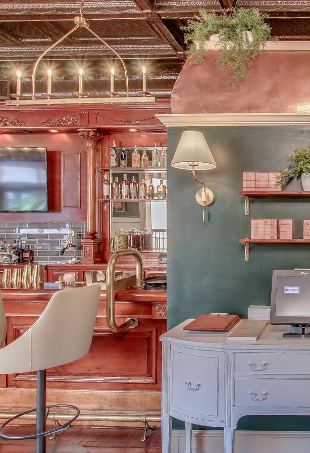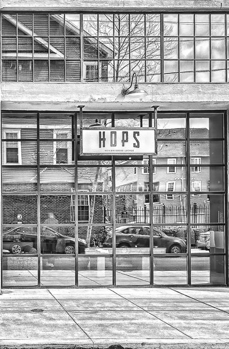 Brewerytown located in Philadelphia, PA has changed the landscape of the neighborhood it occupies and created an urban oasis destination for a diverse population seeking out a unique beer garden in the city. Nestled in the bustling residential re-development area in Brewerytown, Hops offers a vast indoor and outdoor gathering spot filled with multiple bars, games, private dining and lounge spaces. What is truly special about this hot spot, is the way one is visually pulled into the space from the streetscape by a re-markable hand-painted, two-story mural of what truly gives beer its’s essence: hops. This wow feature painted by a local Philly artist went on to inspire not only the name, but set the tone and direction of the space, thus defining the overall vibe and character throughout. The design displays a visual and cognitive marriage between industrial and organic elements. The building, Brewerytown’s rich history and the beer making process all being paramount industrial elements are flawlessly intertwined with colors, fixtures and furniture inspired by the softness and beauty of the organic ingredients used to make beer and the lush nature of the adjacent Fairmount Park/Schuylkill River area. Hops Brewerytown is a truly special addition to an area on the precipice of becoming the next hip part of town. With its one-of-akind character, unique design choices, on trend location and vast offerings, Hops is entirely worthy of becoming a destination not to be missed.