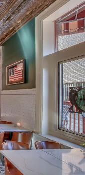 The US Hotel Bar located in Philadelphia, PA has been a late-night staple in the Manayunk neighborhood for decades as a casual hot spot on the main street through town. Over time, the reputation and interior had become tired and in need of a full, rebranding renovation. The Client engaged APOP to establish a sophisticated and classic approach to Americana through the designed elements which should appeal to all ages, both new and existing customers yet still have the comfort of a familiar place. The restaurant and bar re-opened after a full renovation in April 2019 with a richness and sophistication through color choices of camel, black, green, gold finished fixtures, American history inspired art and leather upholstered furniture. The designers did retain and restore iconic pieces like the intricate tile floor and carved bar millwork details in addition to adhering to historical design requirements for exterior updates.