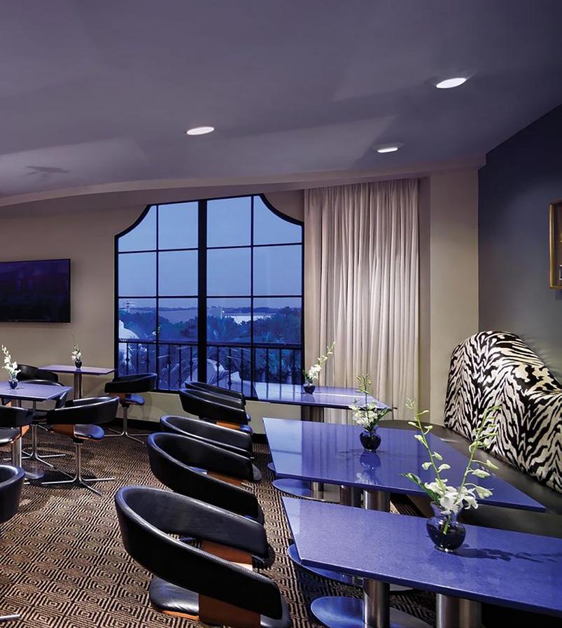 This featured concierge club lounge was revamped to provide more interior dining seating to the growing crowds of daily guests. The clean, cool backdrop of neutrals mixed with animal print and geometric patterns with minimal, refined pops of color produced a clean, contemporary feel. The space plan was redesigned to provide ample dining seats as well as lounge space. The utmost importance was giving to the custom re-framing of the famed Hard Rock collection art pieces hotel guests have become accustomed too.