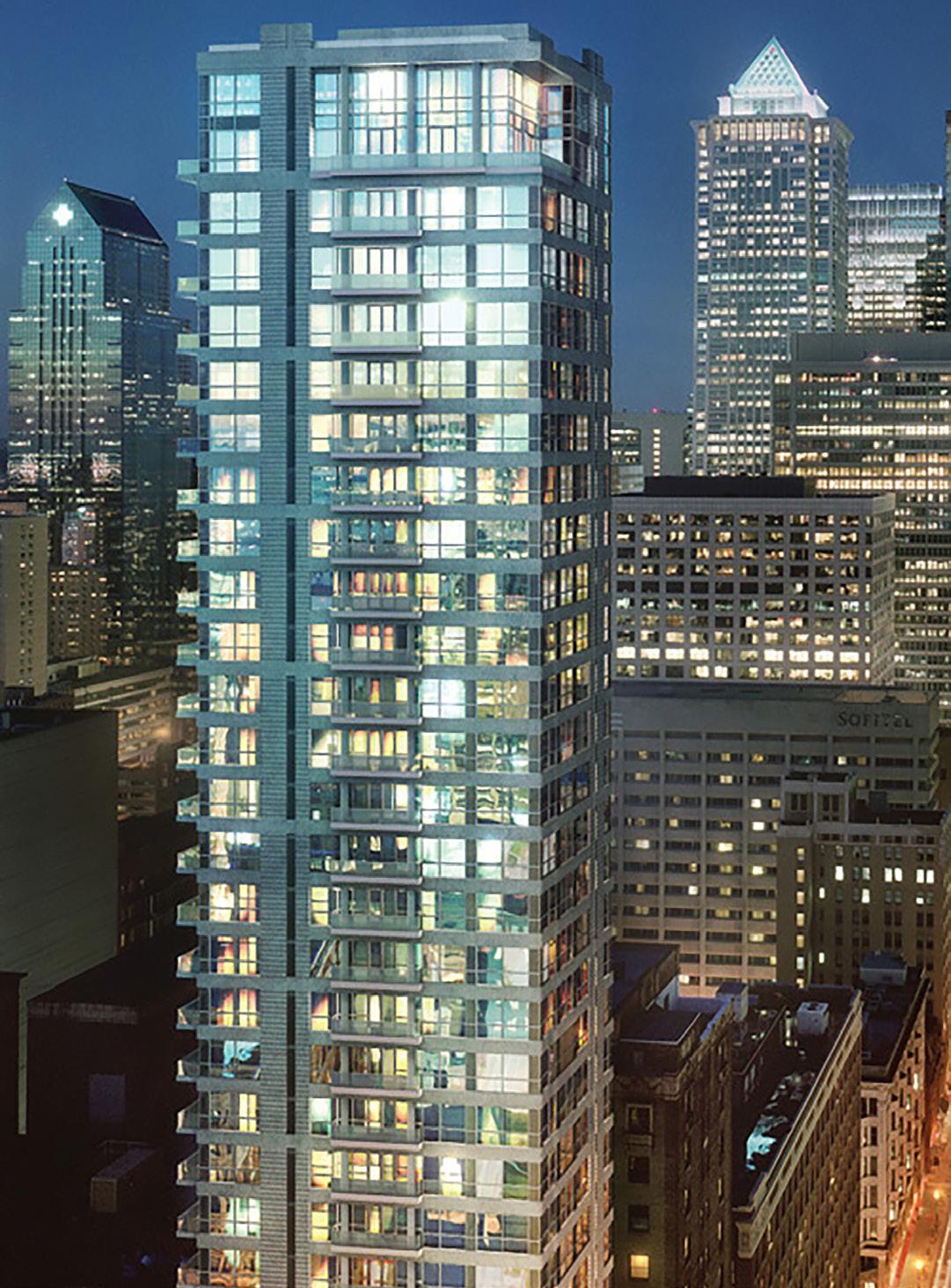 One of a kind when completed in 2010, 1706 Rittenhouse Square Street offered some of the largest and most expensive residential condominiums on the market, most spanning a full floor of 4,200 sf. Each unit has a private elevator entrance, full height glass windows and 360 degree views of Philadelphia. The building features an underground automated parking garage, koi pond, lobby with concierge, lap pool, fitness center and full conference area.