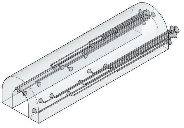 整个结构由七个独立的小结构组成,它们相互 连接,形成一条通往书中描绘的银色球形生命体 的道路。