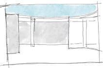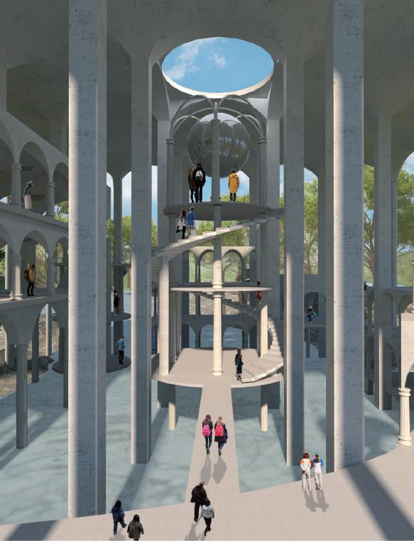 仅仅采用圆形布局会限制参观者在室内的活动范围和视野,而完全笔直的墙 壁也会妨碍实现这一目标。因此,通过引入圆形元素,我们可以中和直线的僵 硬感,同时扩大参观者的视野