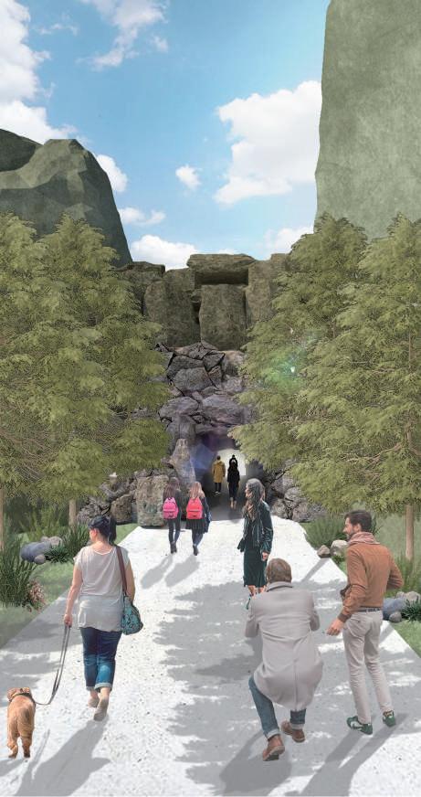 为了让参观者有更身临其境的体验,将室内外空间切割成三个部分,让参观者逐渐进入其中,感受信 仰的力量。